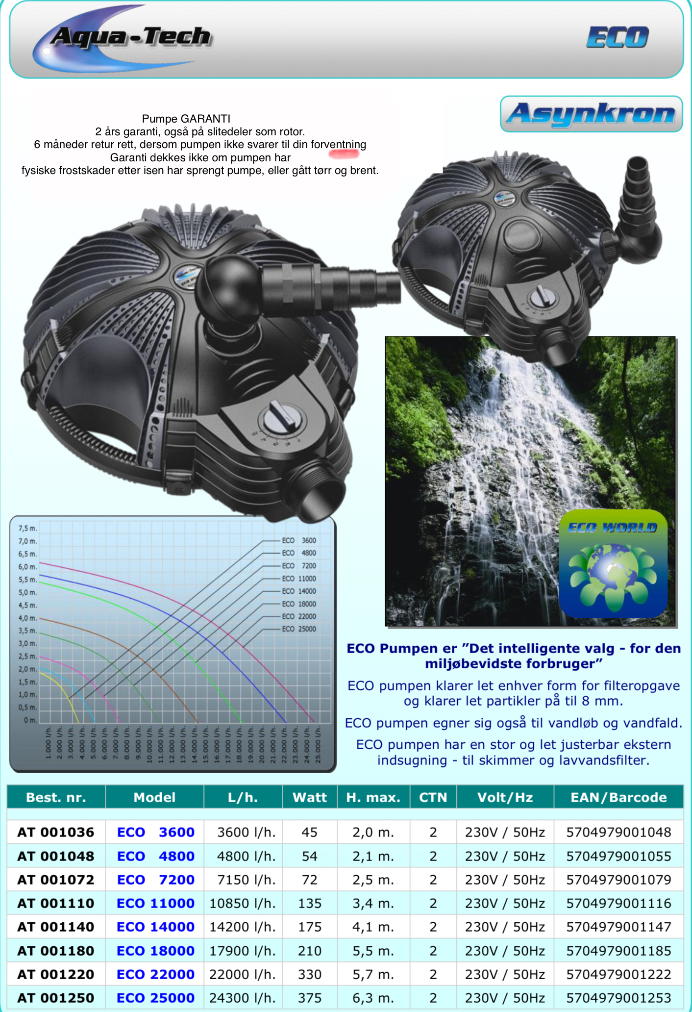 • EcoPond 11.000 liter pumpe . Her har vi lagt ved den beste pumpen i sin klasse./ Meget driftsikker
