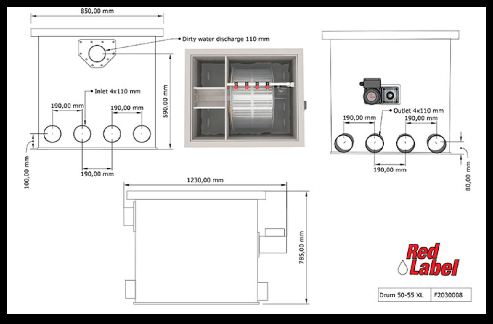 Red Label Trommelfilter er et mekanisk forfilter som bestråler vannet med inox uvc 40 eller 80w og fjerner alle små partikler som er mindre en 0,12mm