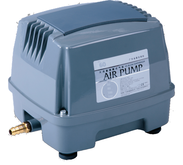 Svært kraftig stillegående luftpumpe, (40 dB) i aluminium.