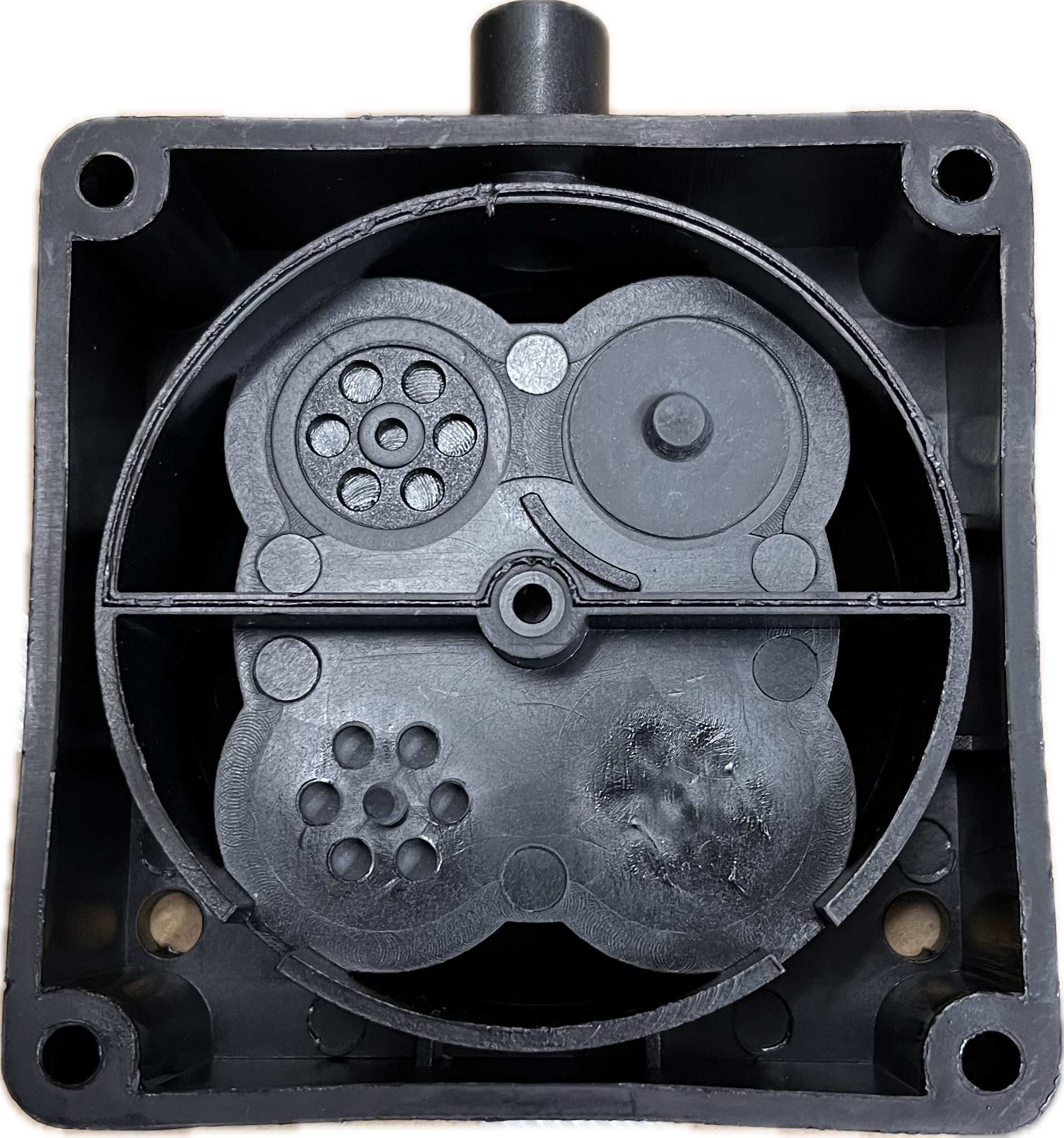 Dersom pumpen går men ikke produserer luft eller gir svært lite luft og store gummimembraner er hele, er det ofte membranen i dette luftkammer som er defekt.
