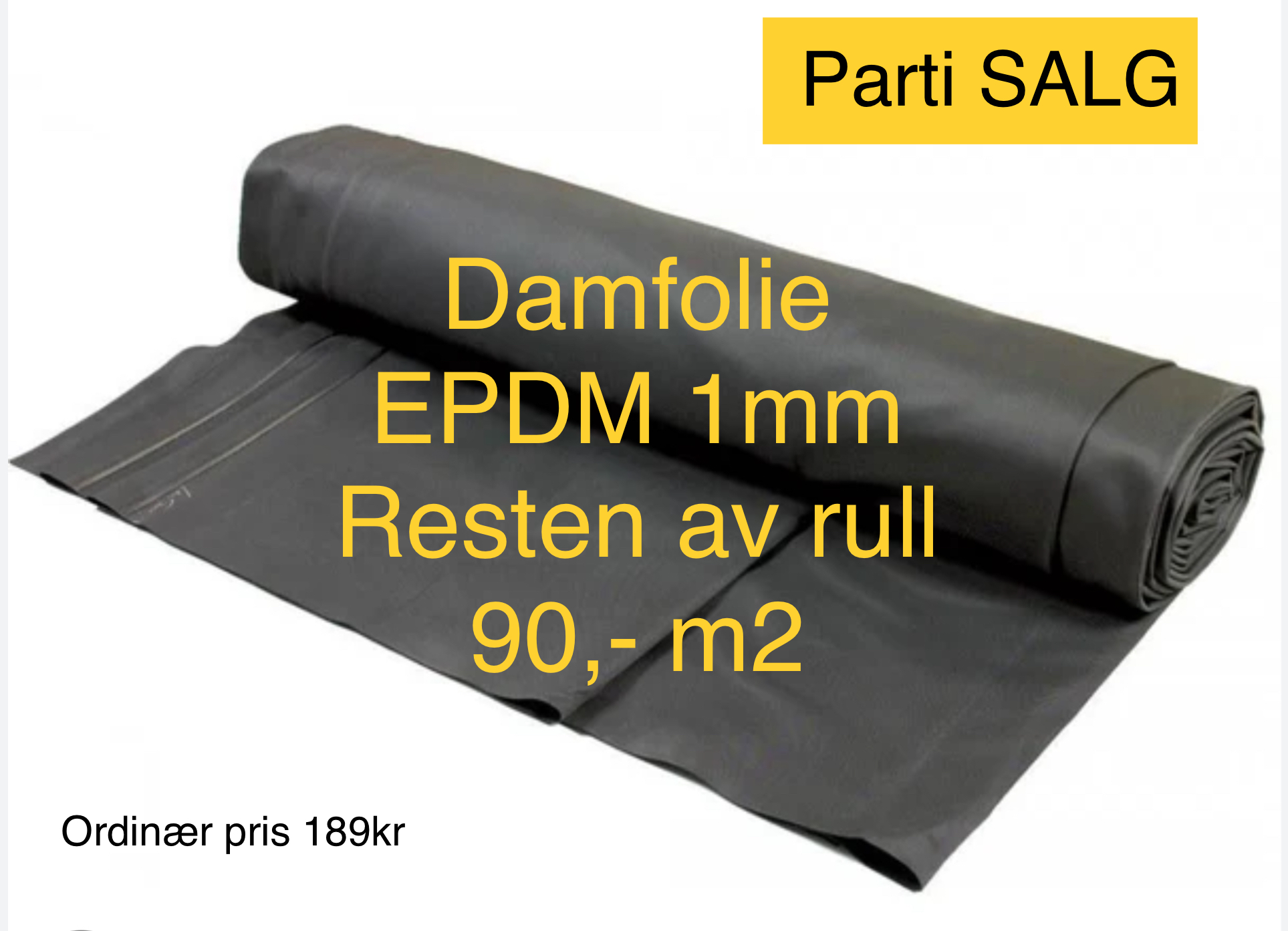 Ved oppkjøp av varelager hos Aqua Tech Danmark, mottok vi ca 2000m2 å med Spansk Epdm Damduk 1mm