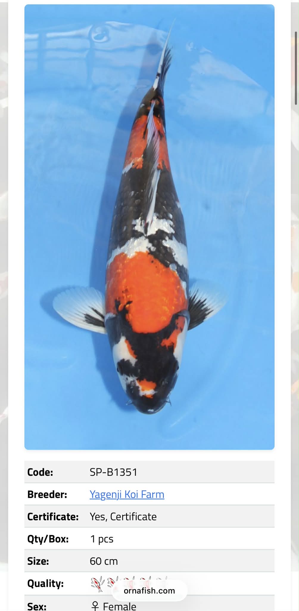 SP-B1351 Yagenji Koi Farm Sansai HQ Female Ginrin Showa 60 cm + 生産証明書 SELECTED