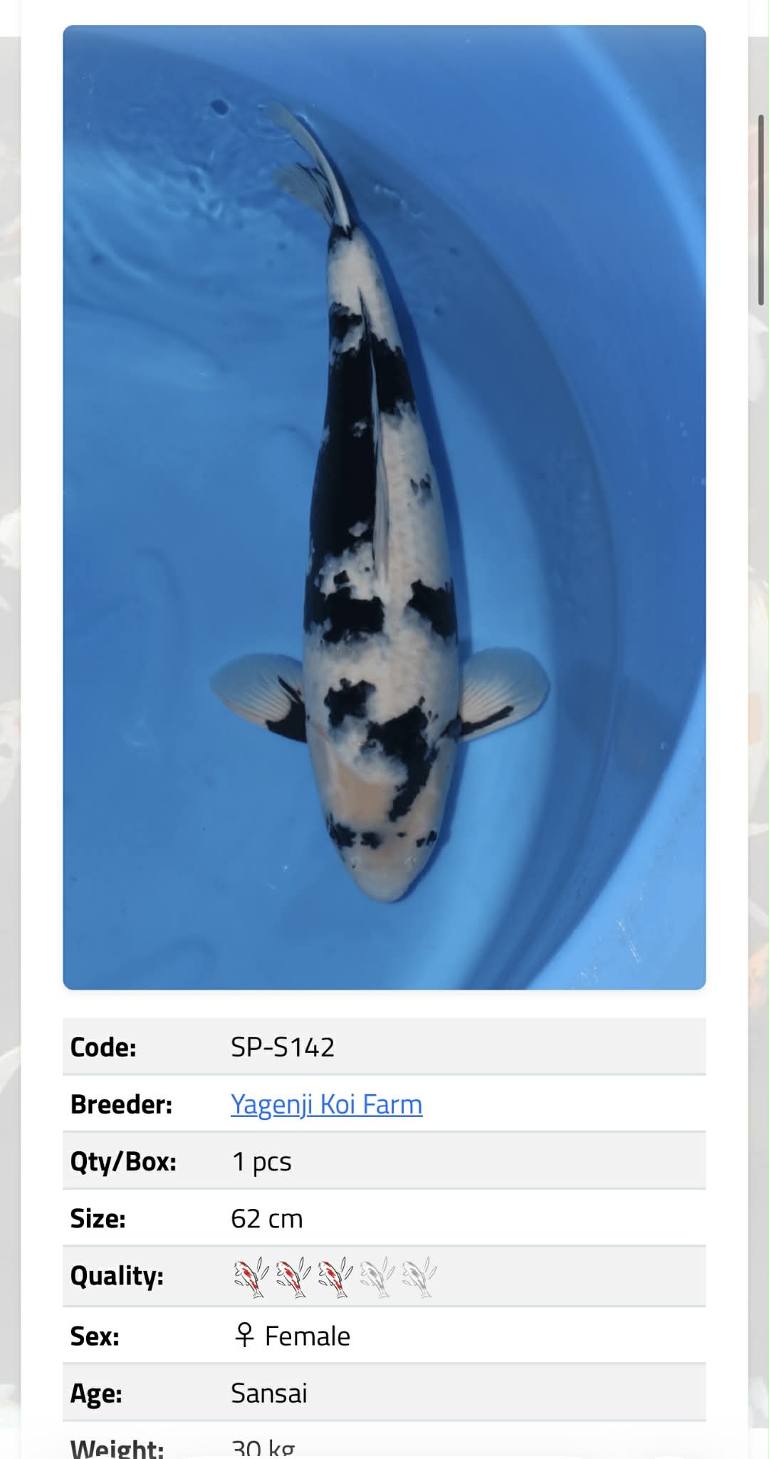 SP-S142 Yagenji Koi Farm Sansai Female Shiro Utsuri 62 cm SELECTED