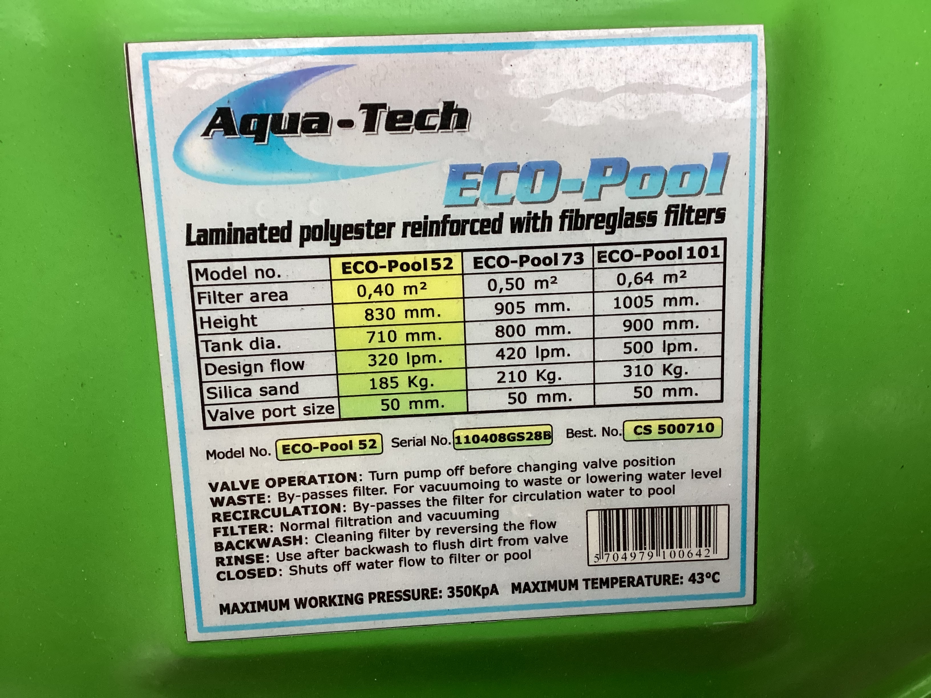 Sandfilter Eco-Pool 52 / Aqua-Tech