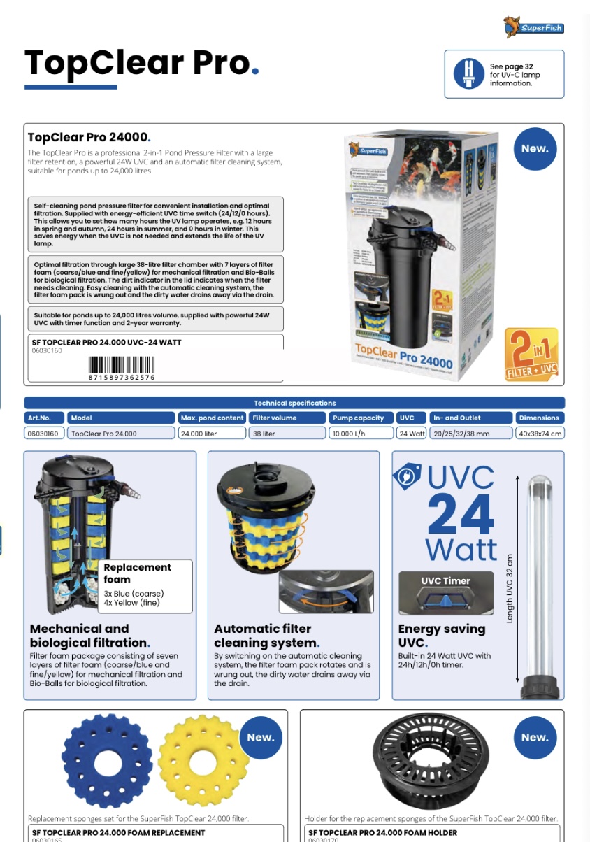 Profesjonelt 2-i-1 trykkfilter med innebygd UVC og automatisk filterrensesystem.