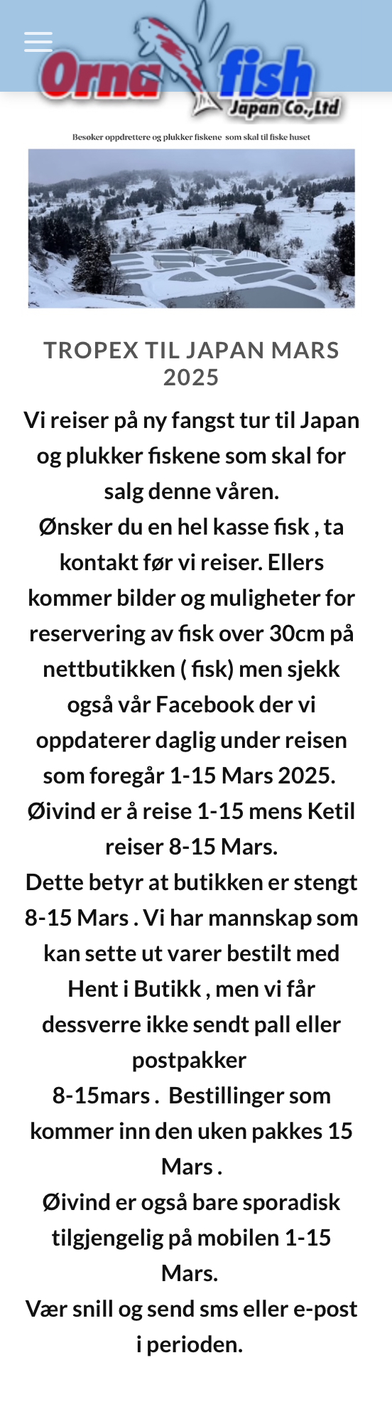 1-15 Mars plukker vi fisk i Japan for sessongen. Følg turen på FB.